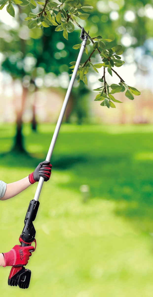 Med en kapkapacitet på upp till 20 mm är modellen väl lämpad för beskärning av unga och medelgrova grenar. Varje batteri klarar cirka 3 500 klipp, och med två medföljande batterier får du upp till omkring 7 000 klipp per laddningsset. Den intelligenta laddaren laddar automatiskt batterierna ett i taget.